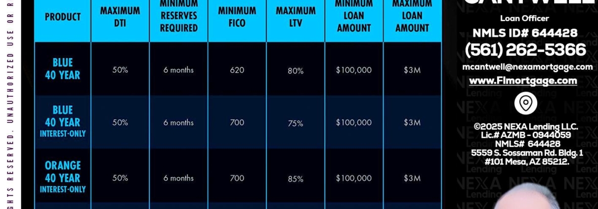 40 YR. OPTIONS - Michael Cantwell -Loan OfficerHi, my name is Michael Cantwell. I’m a Loan Officer with NEXA Mortgage LLC., offering personalized mortgage solutions, fast customized quotes, great rates and service with integrity.