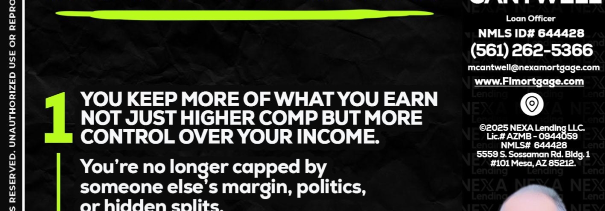Hi, my name is Michael Cantwell. I’m a Loan Officer with NEXA LENDING LLC., offering personalized mortgage solutions, fast customized quotes, great rates and service with integrity.
