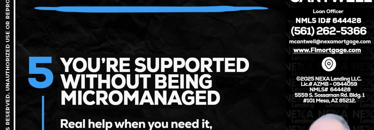 Hi, my name is Michael Cantwell. I’m a Loan Officer with NEXA LENDING LLC., offering personalized mortgage solutions, fast customized quotes, great rates and service with integrity.