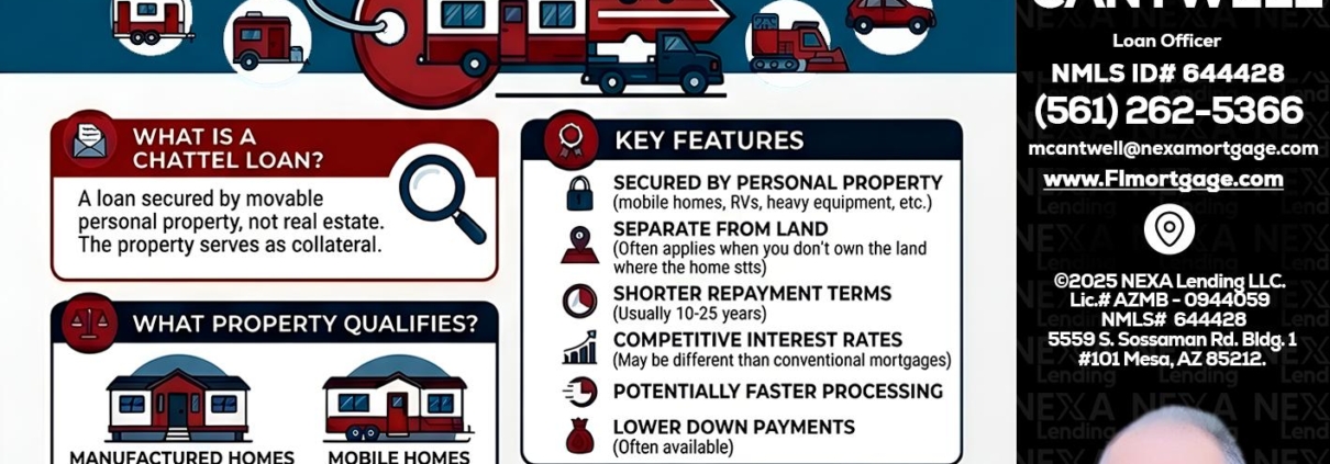 Hi, my name is Michael Cantwell. I’m a Loan Officer offering personalized mortgage solutions, fast customized quotes, great rates and service with integrity. If you’re interested in learning more about the Chattel loan or any other, just let me know and I’ll walk you through your options.