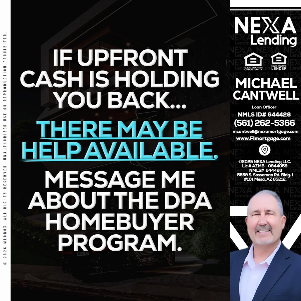 Hi, my name is Michael Cantwell. I’m a Loan Officer with NEXA Mortgage LLC., offering personalized mortgage solutions, fast customized quotes, great rates and service with integrity.