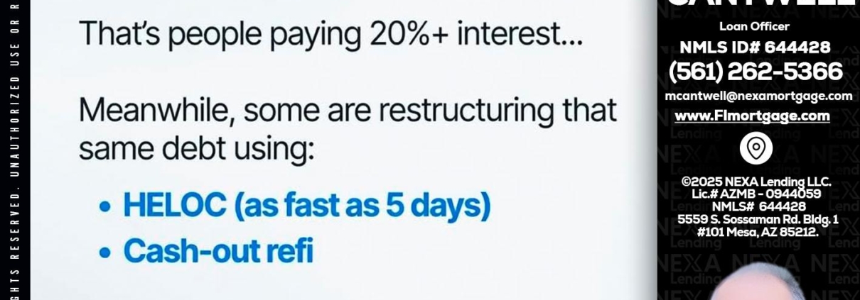 Hi, my name is Michael Cantwell. I’m a Loan Officer with NEXA Lending LLC., offering personalized mortgage solutions, fast customized quotes, great rates and service with integrity.