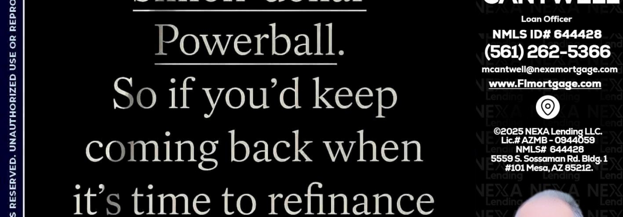 Hi, my name is Michael Cantwell. I’m a Loan Officer with NEXA LENDING LLC., offering personalized mortgage solutions, fast customized quotes, great rates and service with integrity.