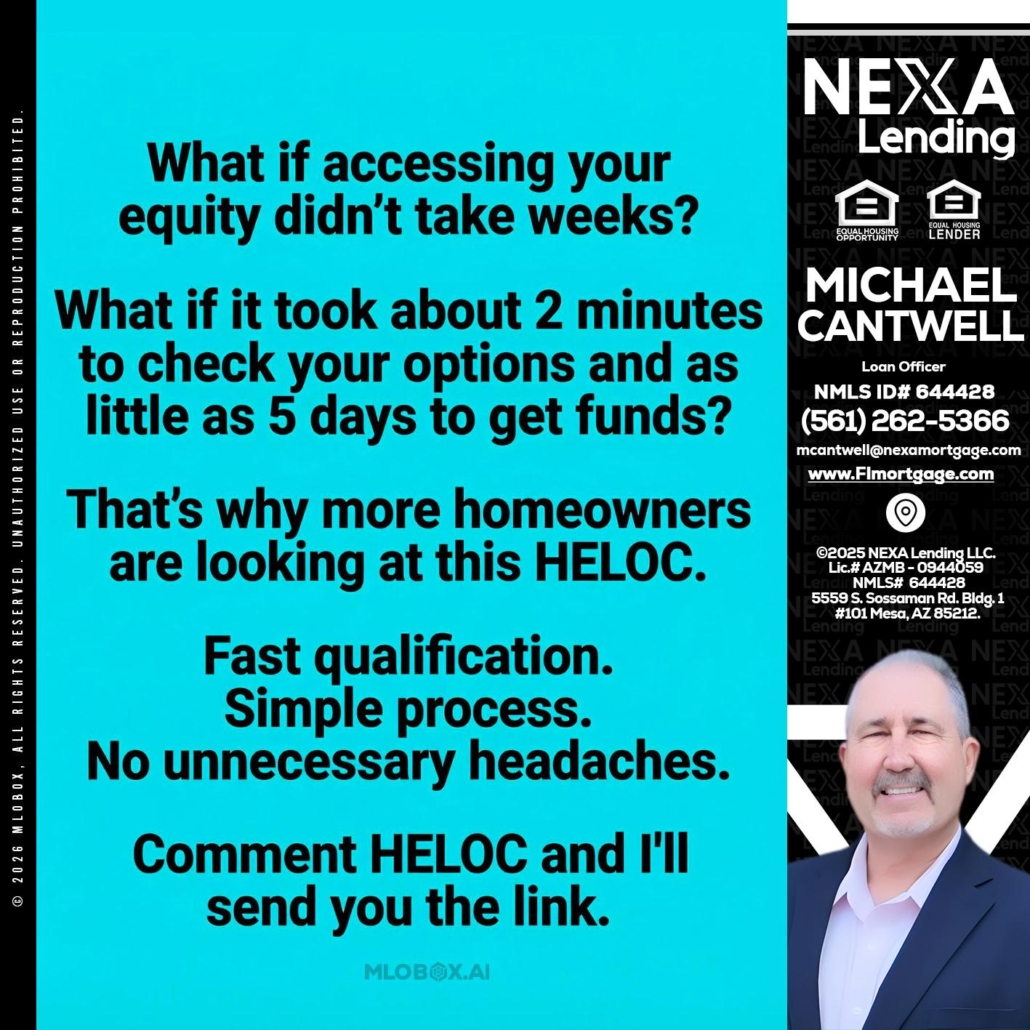 what if - Michael Cantwell -Loan OfficerHi, my name is Michael Cantwell. I’m a Loan Officer with NEXA Mortgage LLC., offering personalized mortgage solutions, fast customized quotes, great rates and service with integrity.