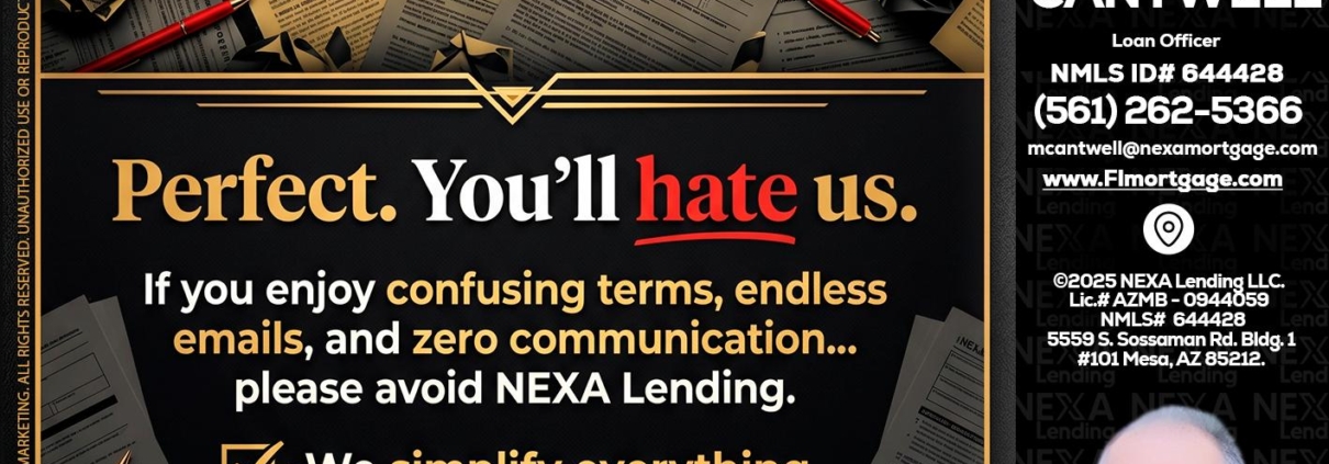 YOU WILL HATE US! - Michael Cantwell -Loan OfficerHi, my name is Michael Cantwell. I’m a Loan Officer with NEXA Lending LLC., offering personalized mortgage solutions, fast customized quotes, great rates and service with integrity.